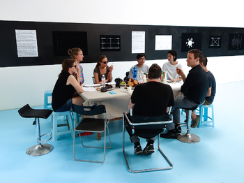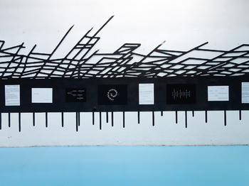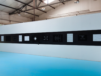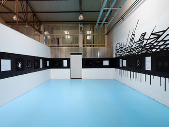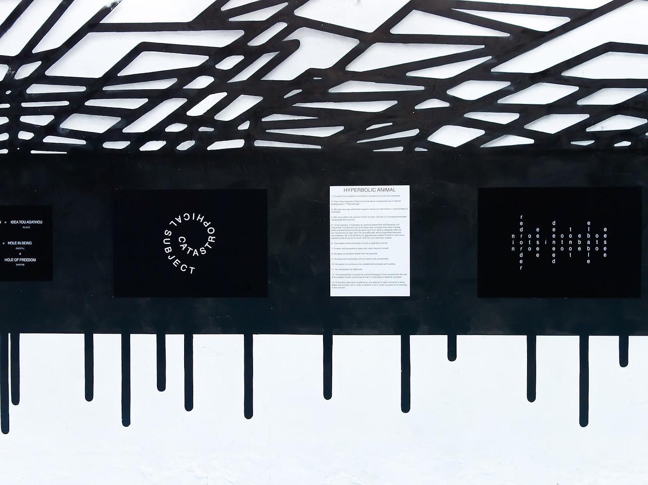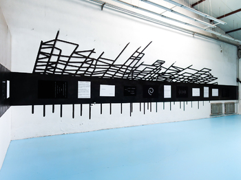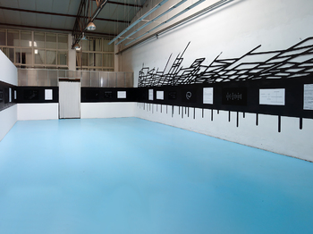 Collaboration with Marcus Steinweg acrylic paint on floor and wall, posters about 12 x 6 m