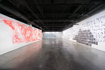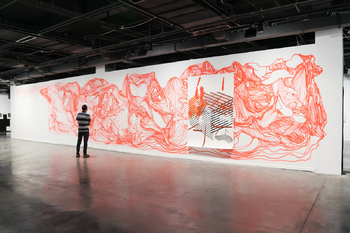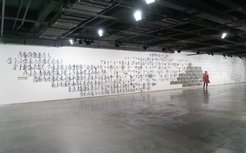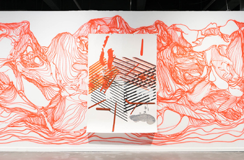 with SADMA hanging on top, 225 x 150 cm