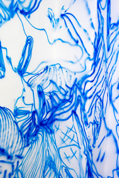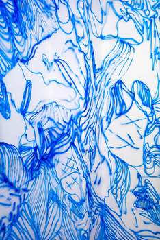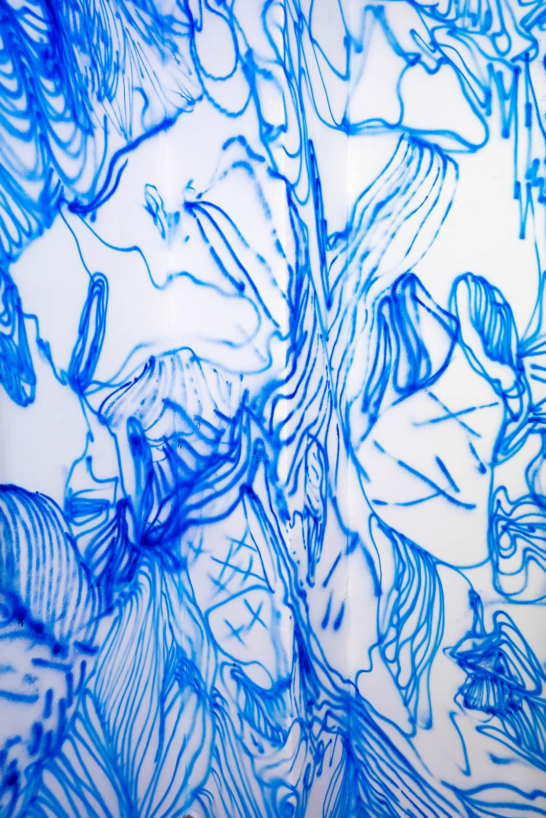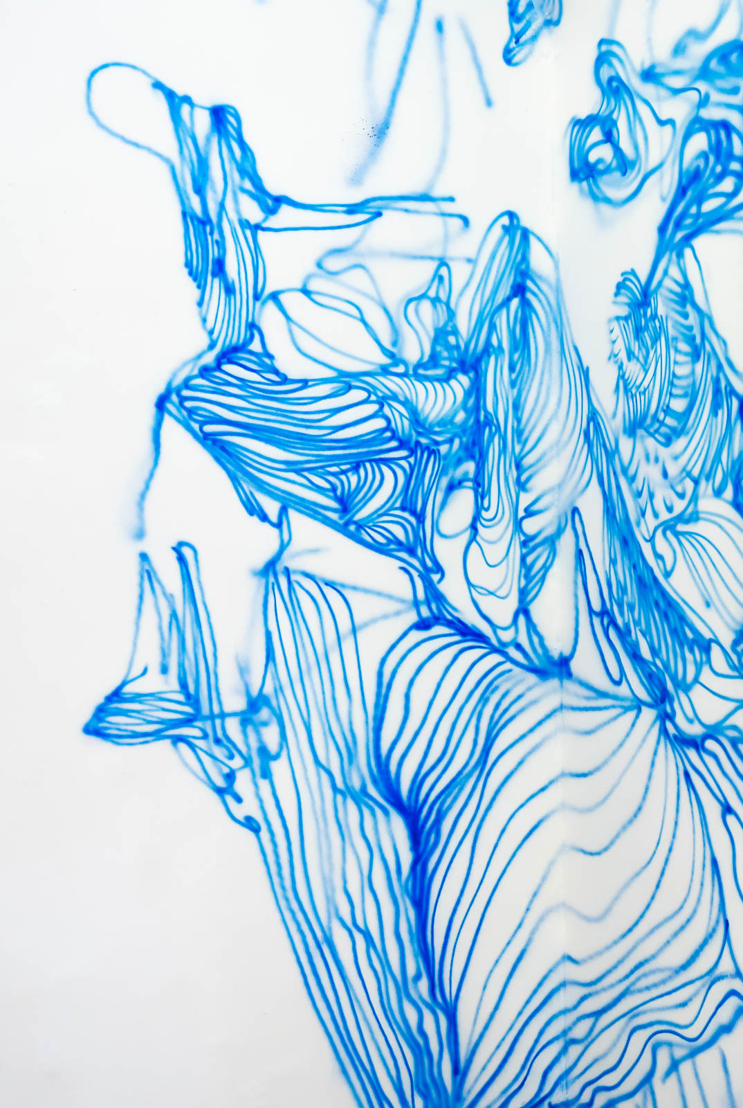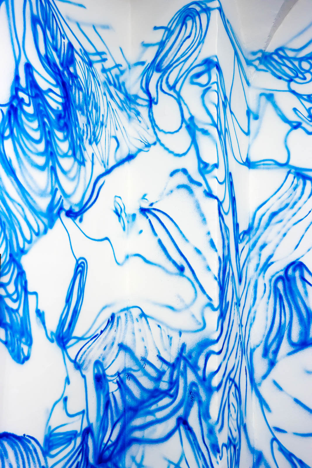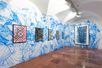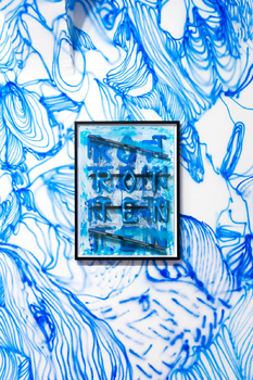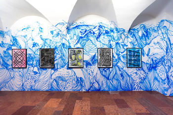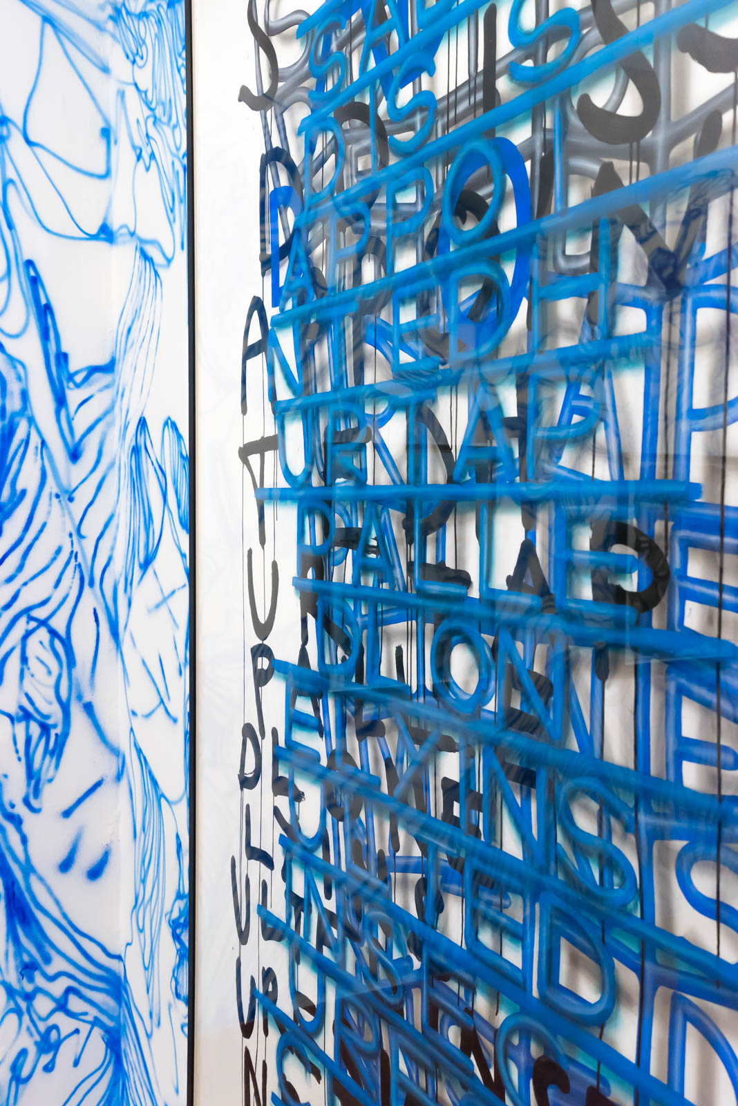 ink on wall, framed single works FRUIT, PARALLEL, TEMP, SADMA