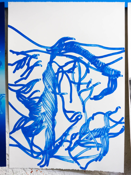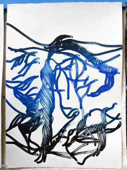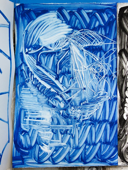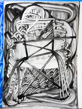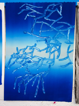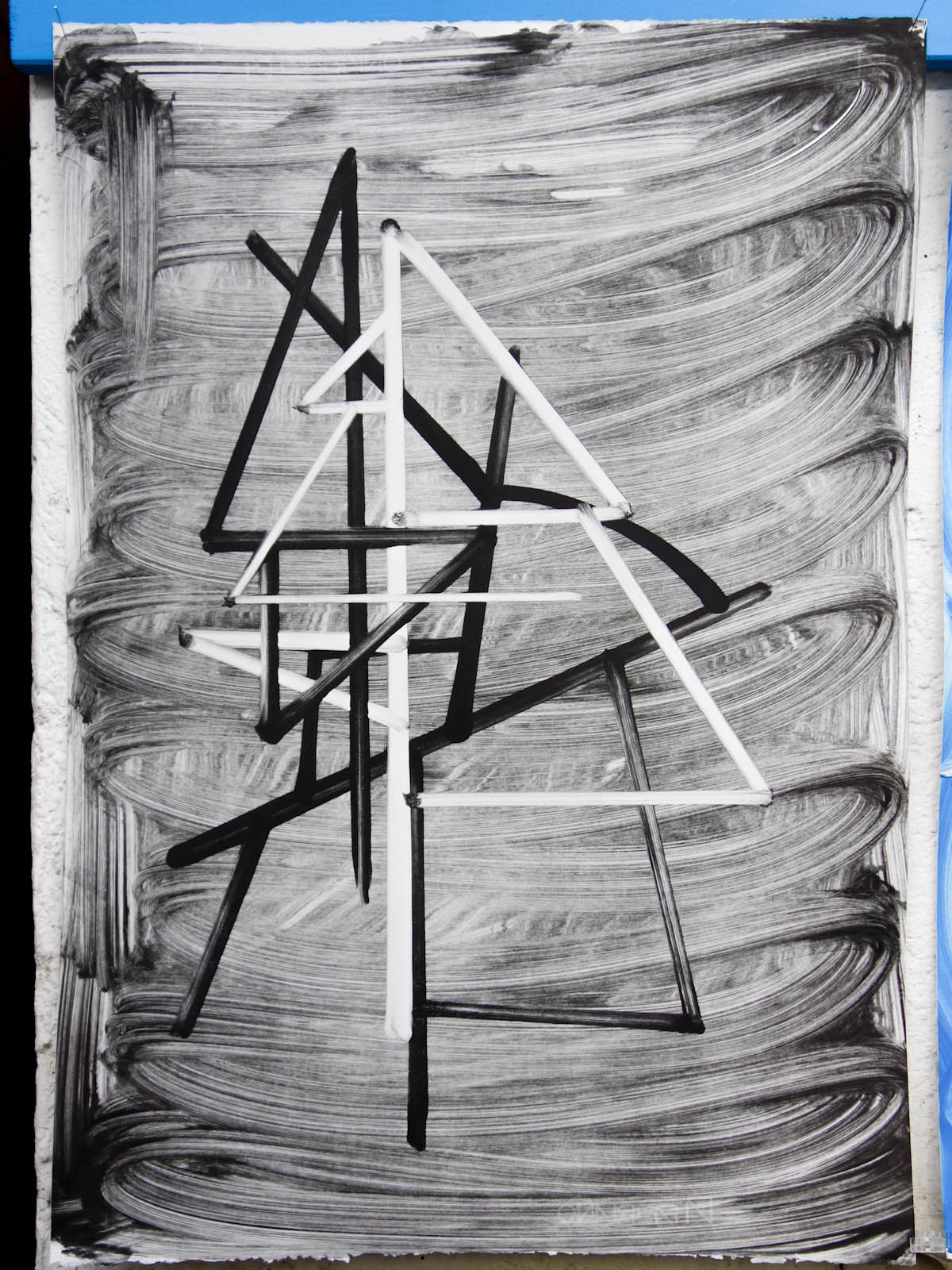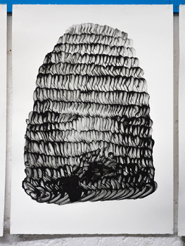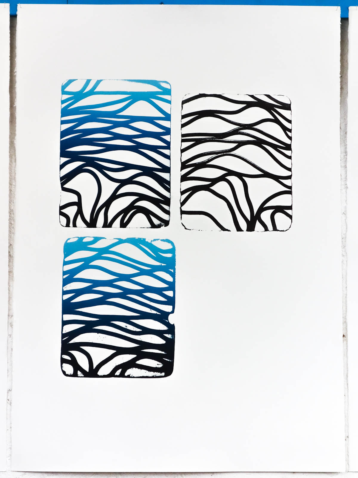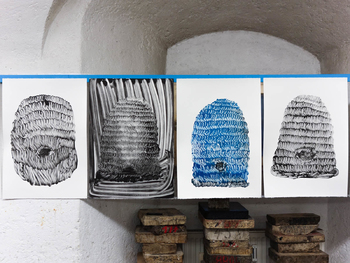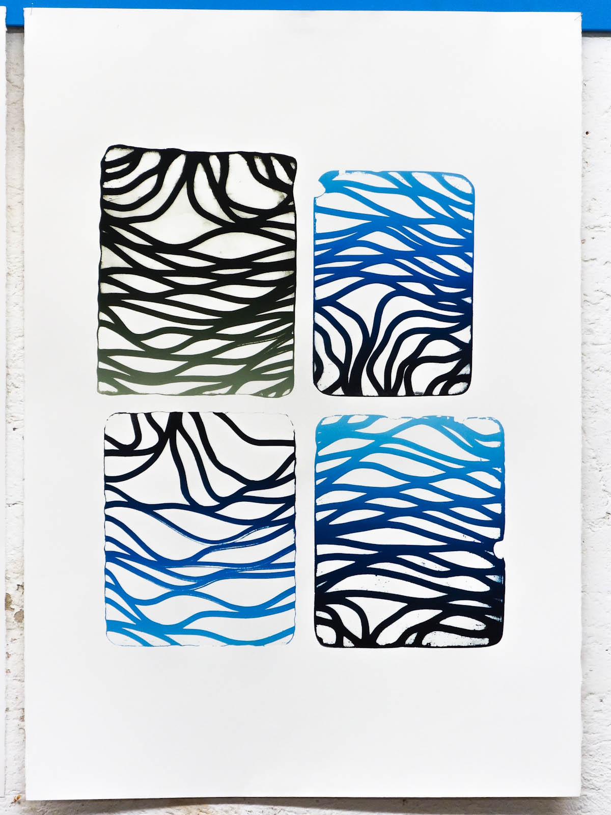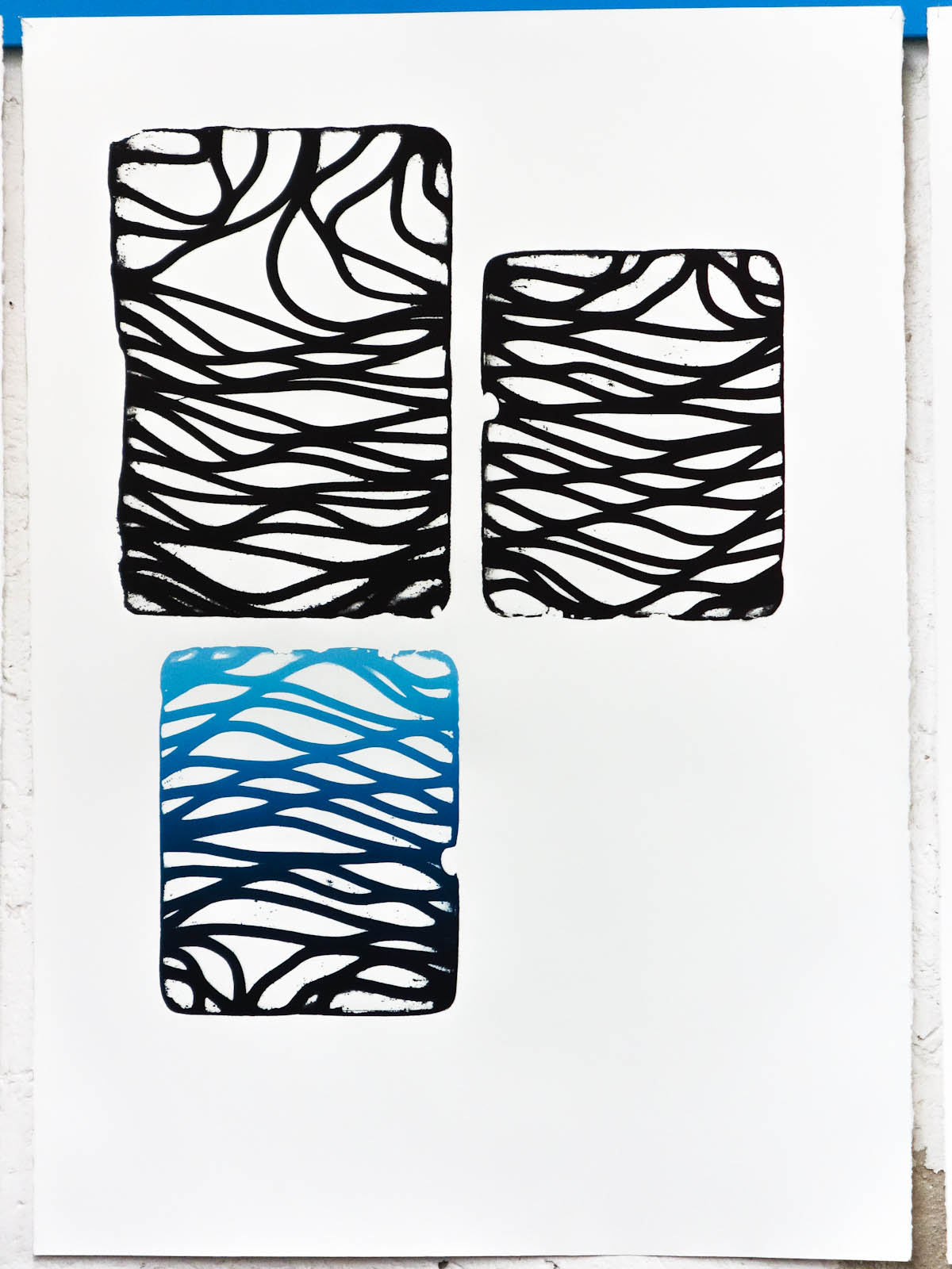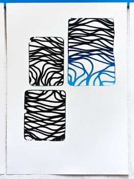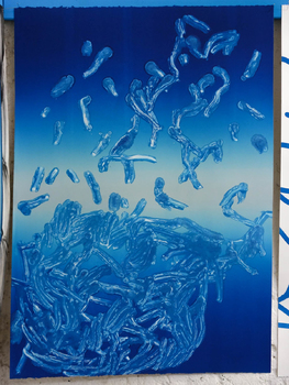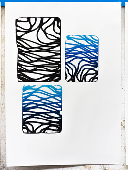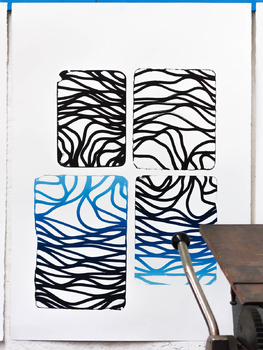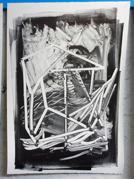 litographies, monotypes, wood, paint, nails