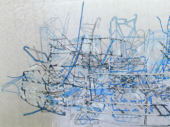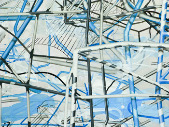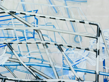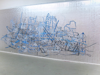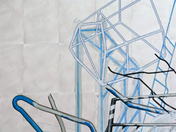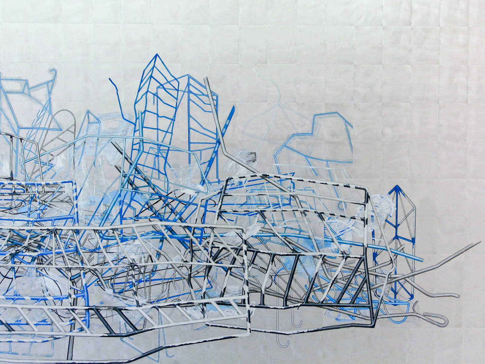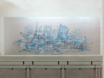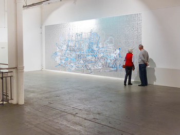 acrylic paint on 340 aluminium plates, 32 x 24 cm each mounted on wall, total: 3,2 x 8,2 m