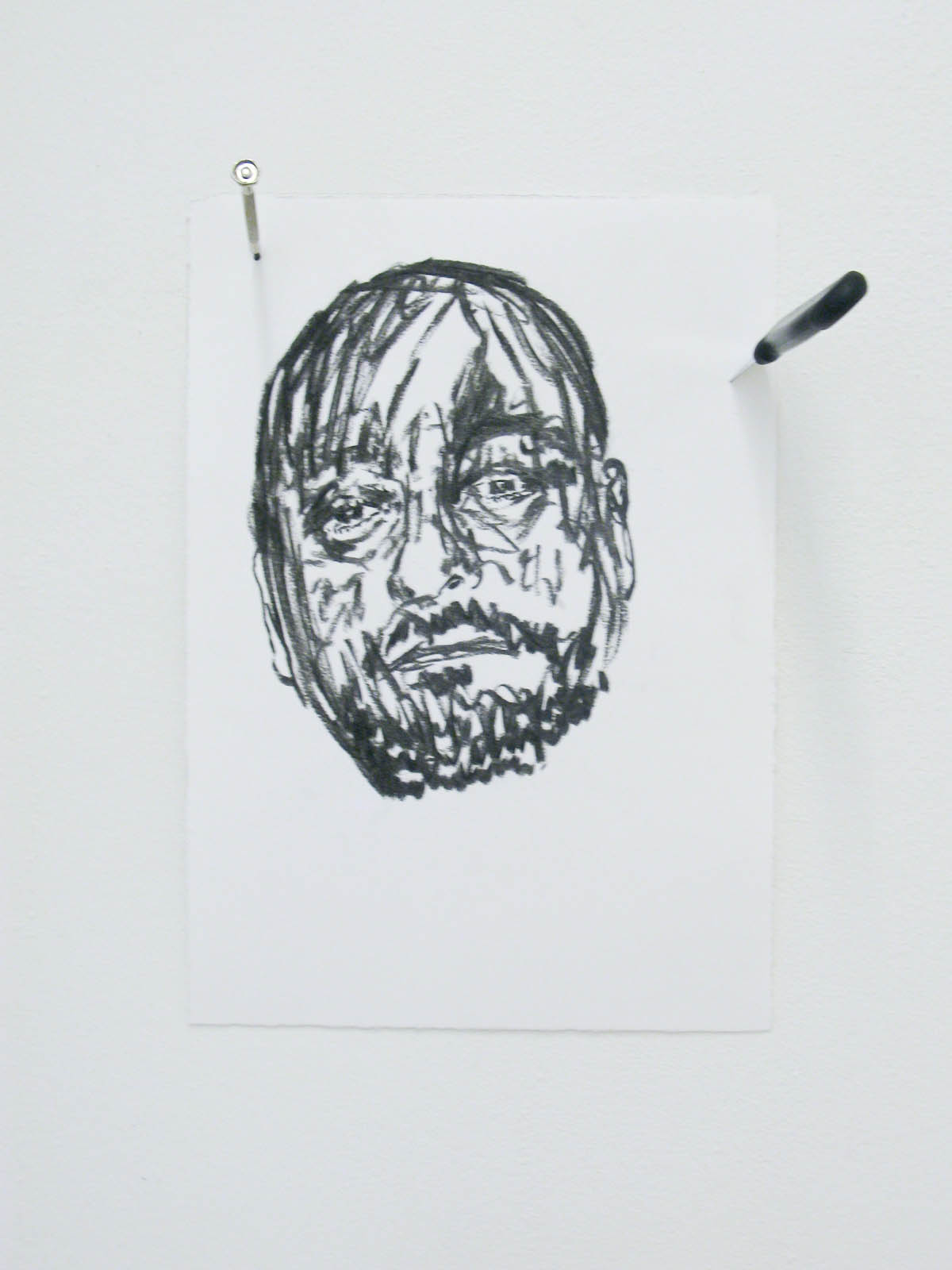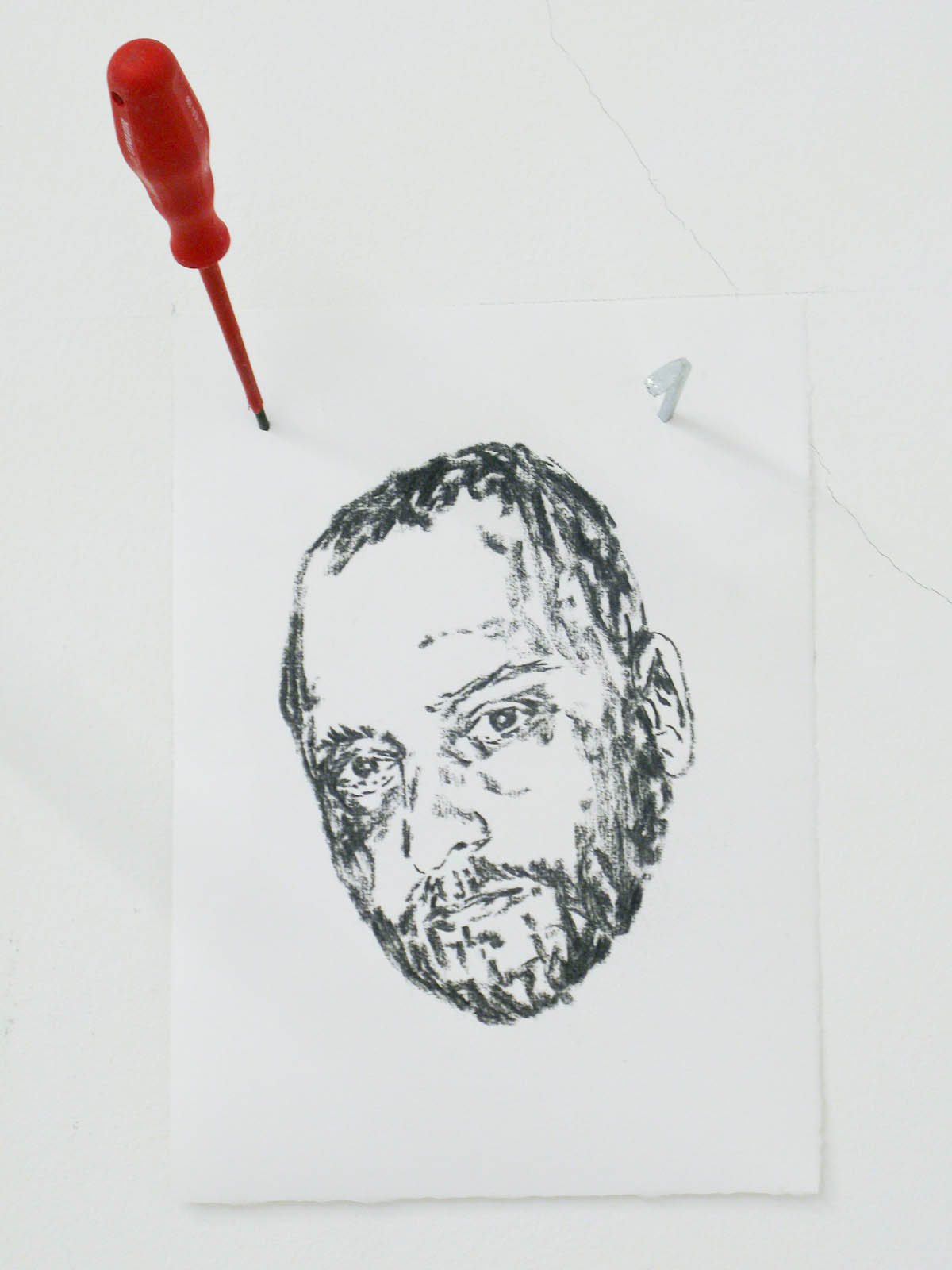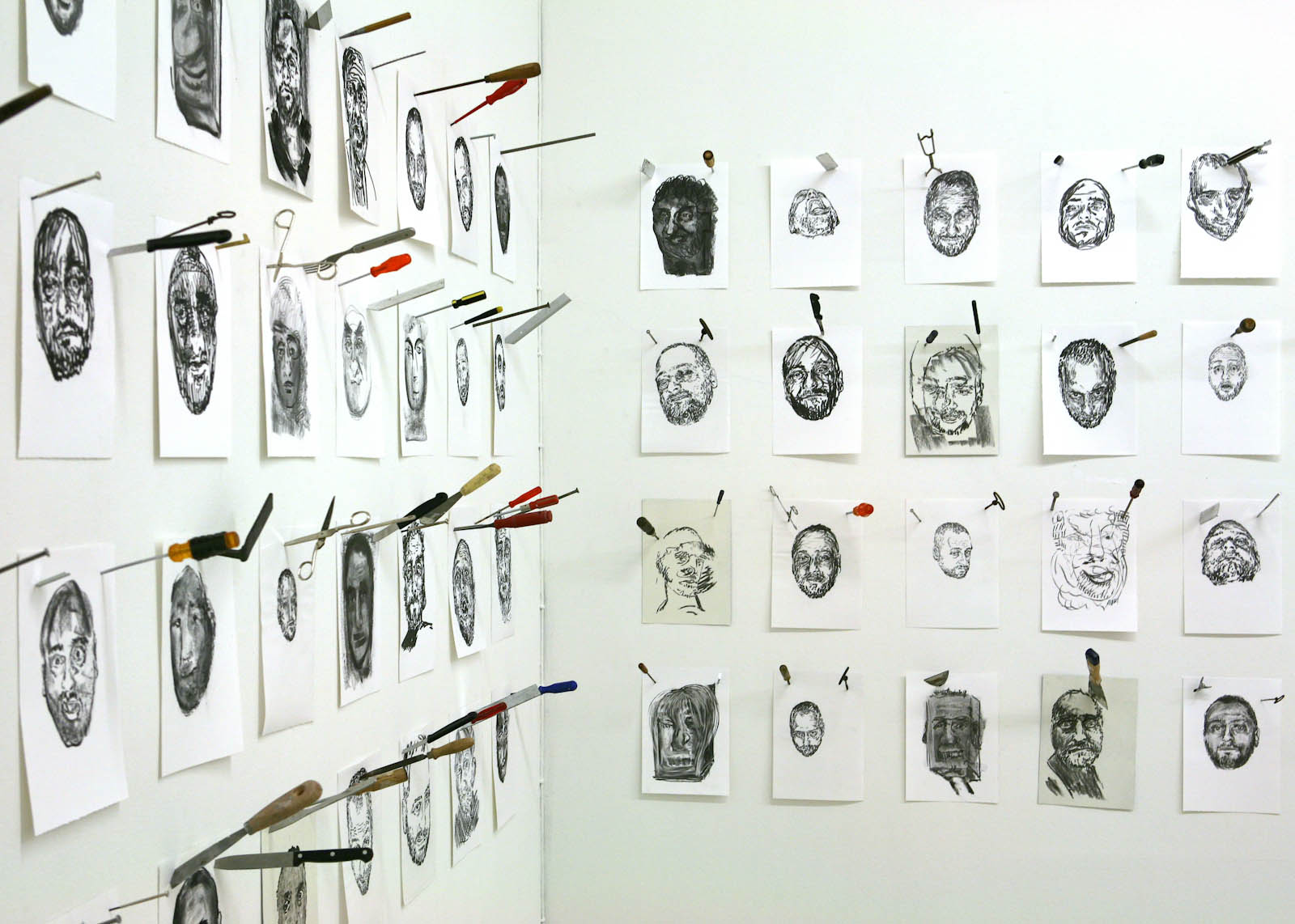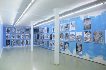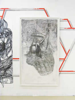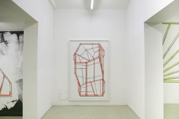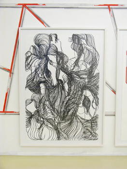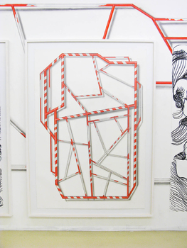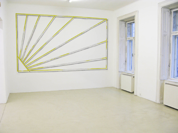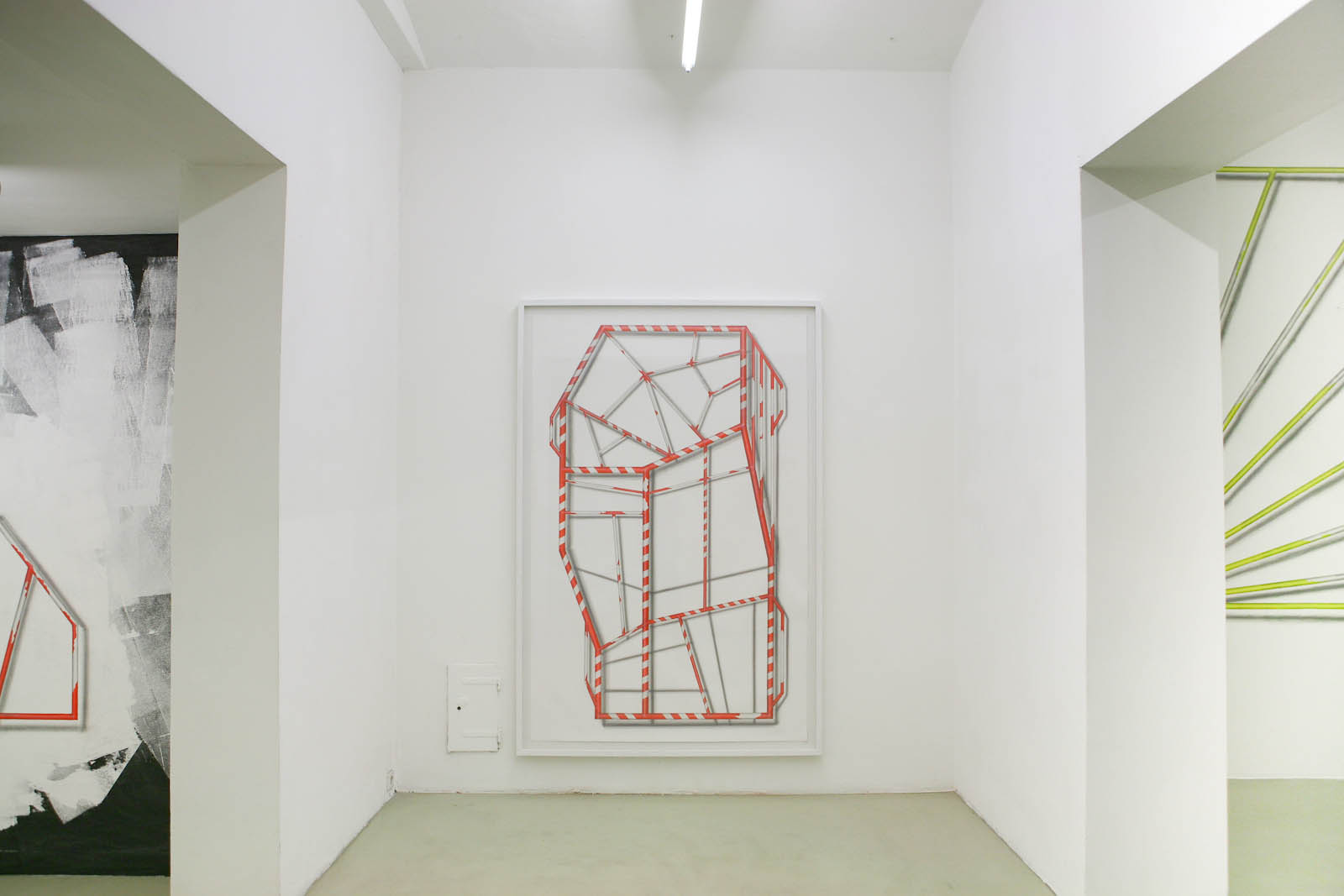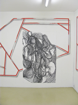 drawing:installation in three rooms acrylic paint and charcoal on paper acrylic paint on wall, tools
