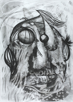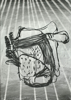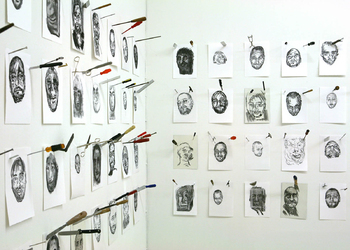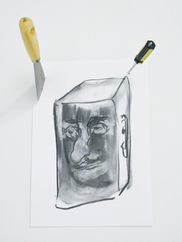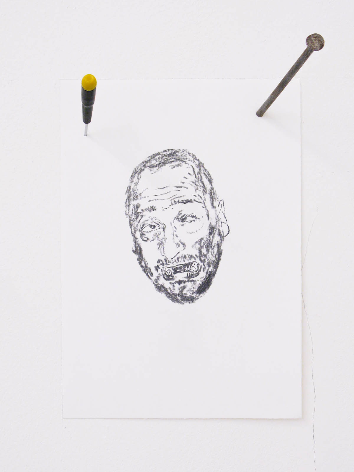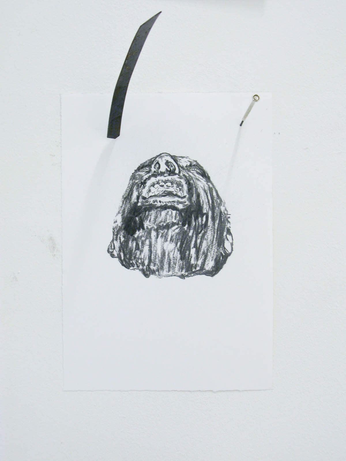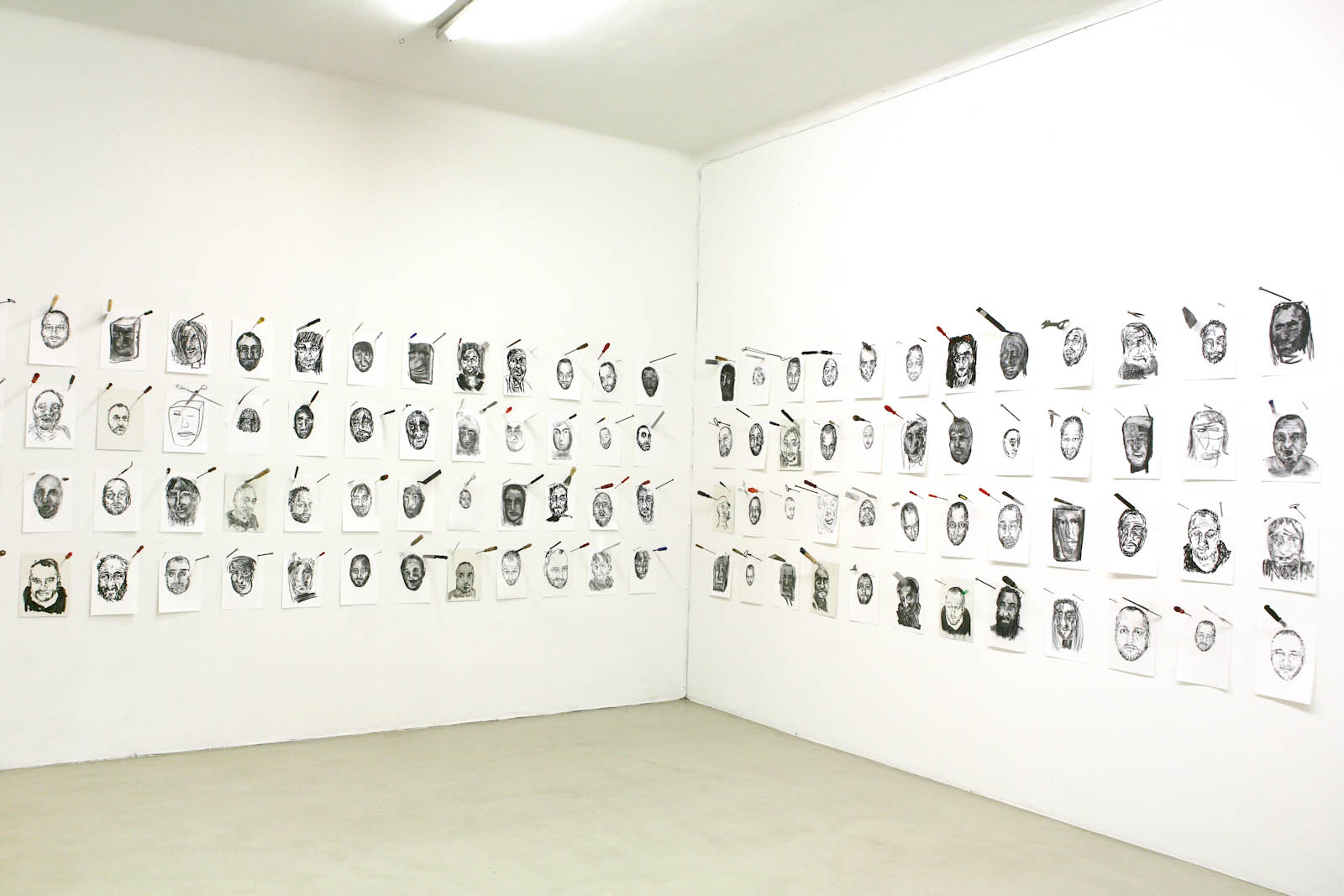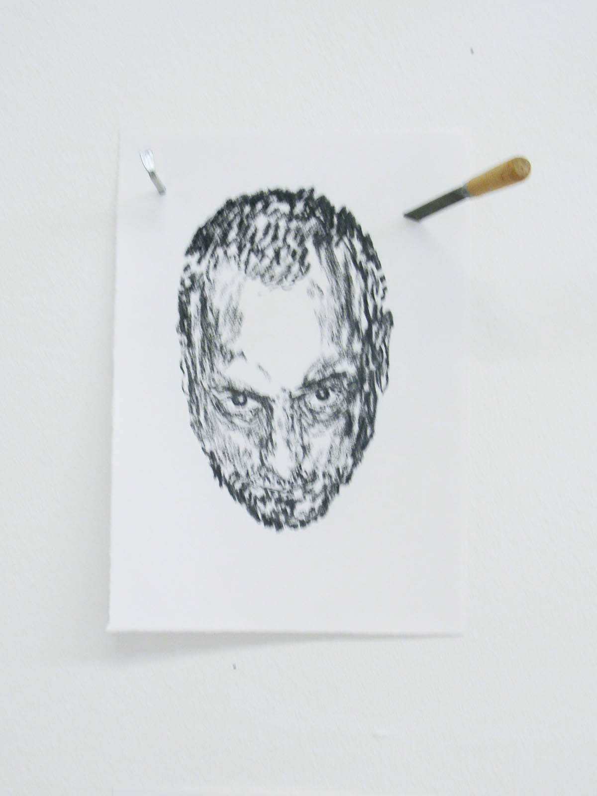drawing:installation in three rooms acrylic paint and charcoal on paper acrylic paint on wall, tools