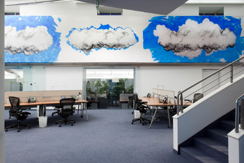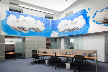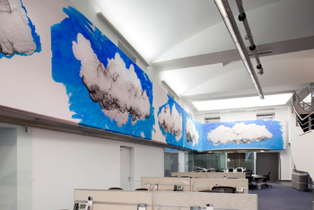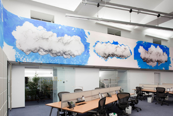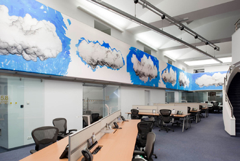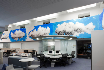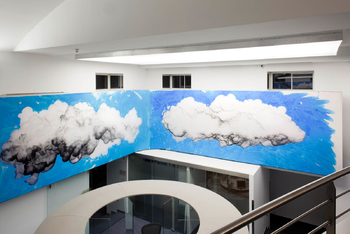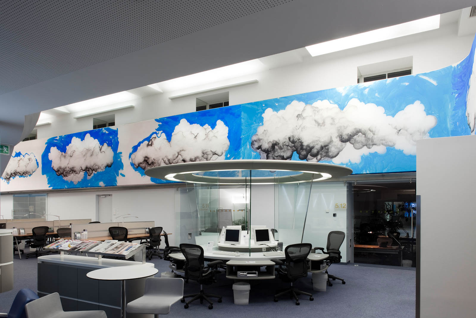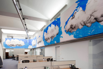 artstripe Nr: 09, inkjet on textil mounted on aluminium structure 250 x 3800 cm, artstripe is a project in the rooms of Accenture curated by Liquid Frontiers Fotos©2010:Christian Wachter