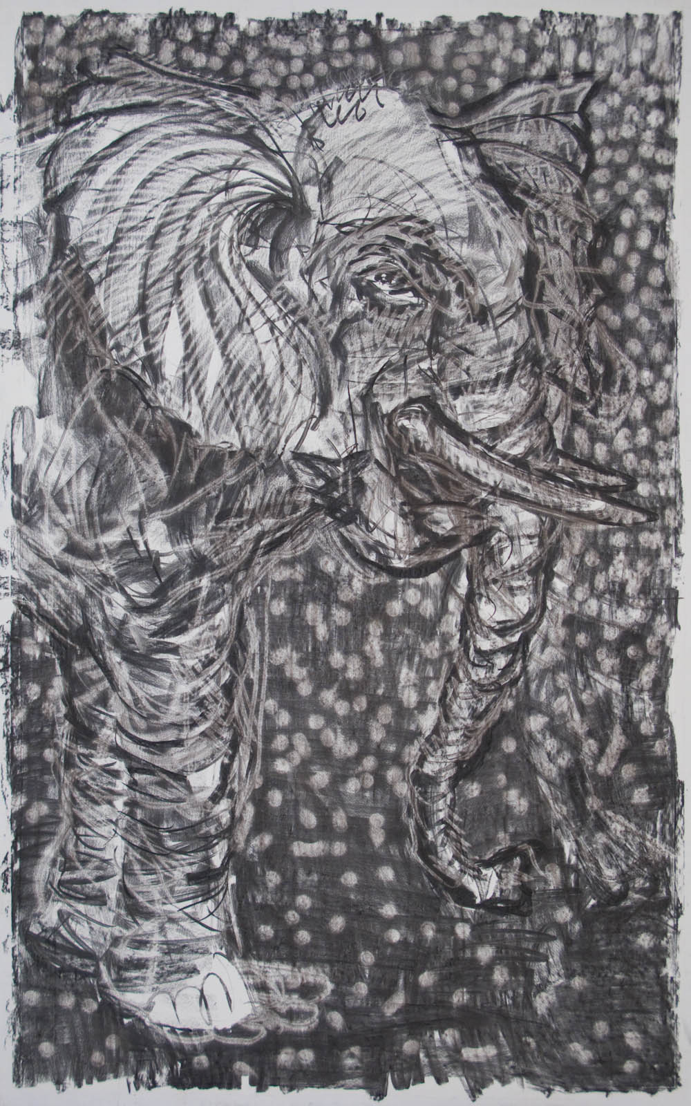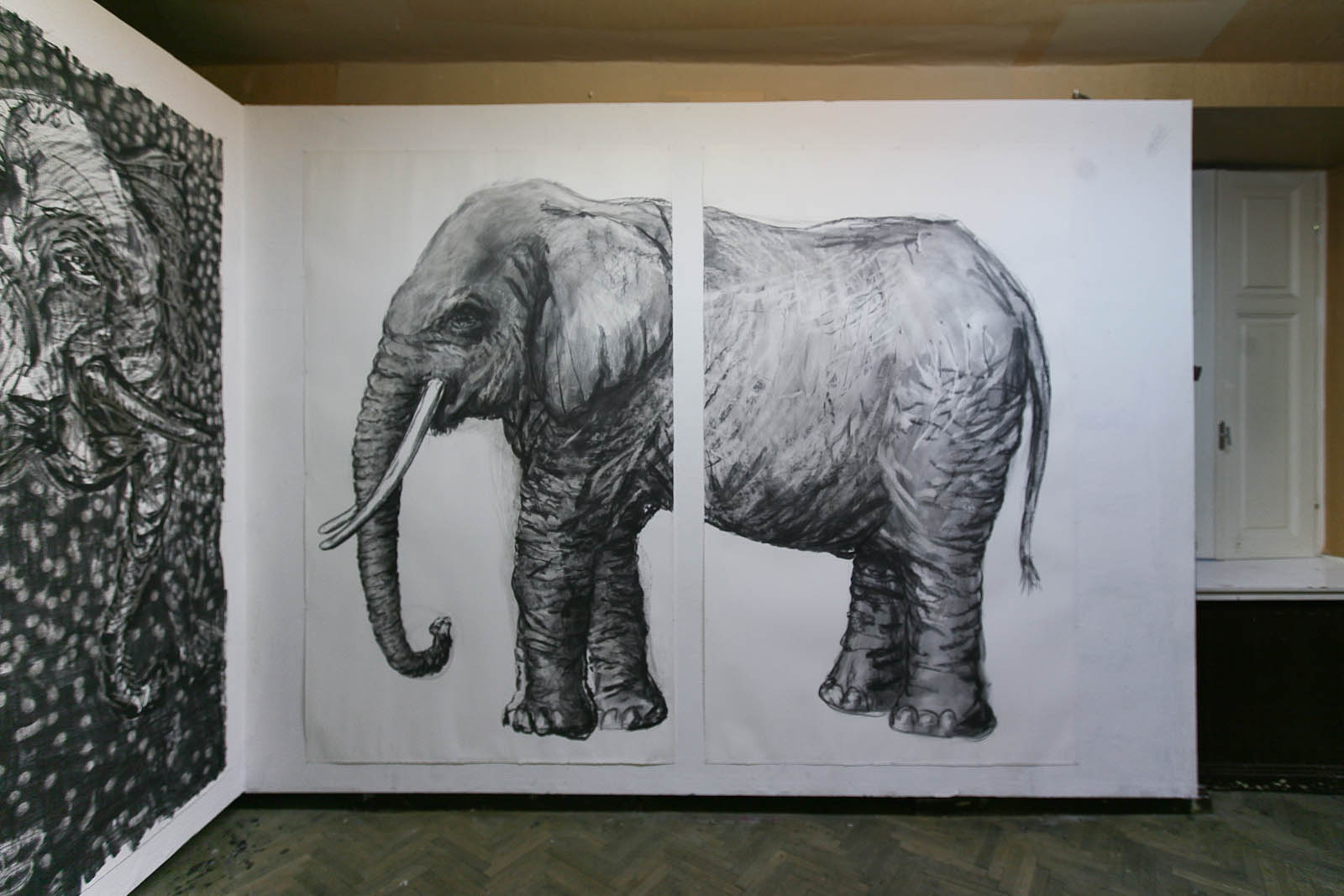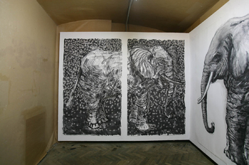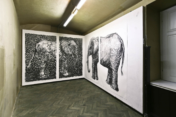 drawing:installation, 4 parts charcoal on paper 245 x 650 cm, invited by Max Böhme