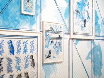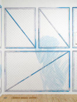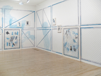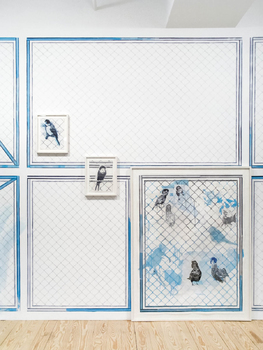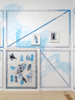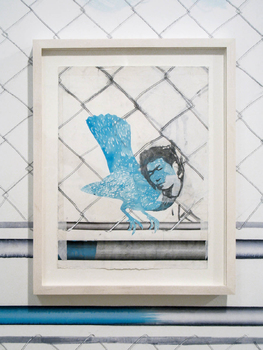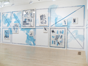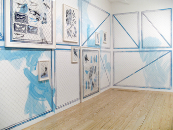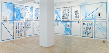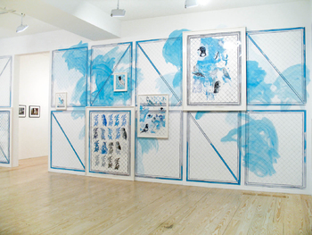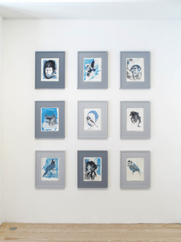 drawing:installation, mixed media on wall 18 framed drawings, ca 360 x 3600 cm