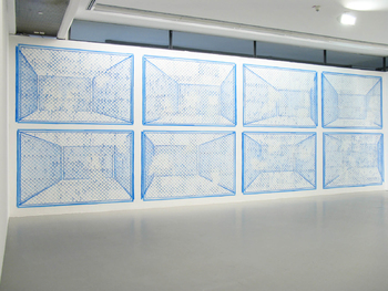 drawing:installation, mixed media on paper on wall, 1600 x 340 cm