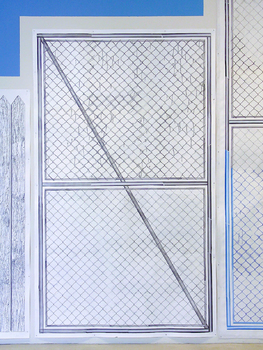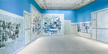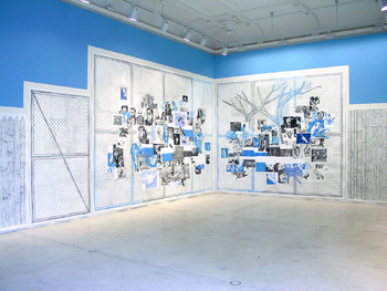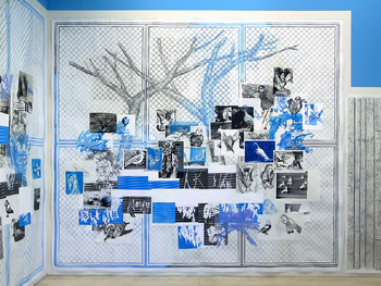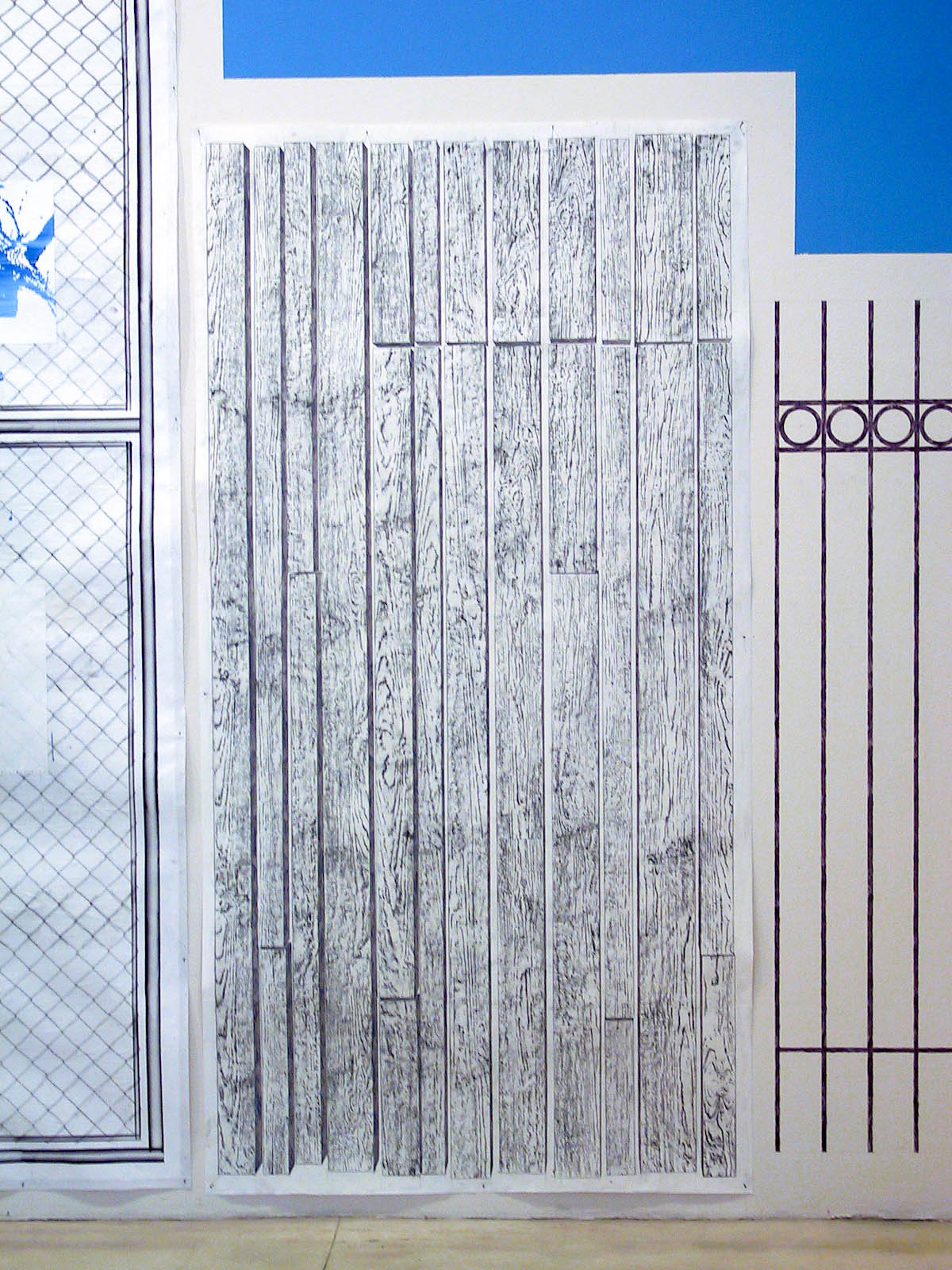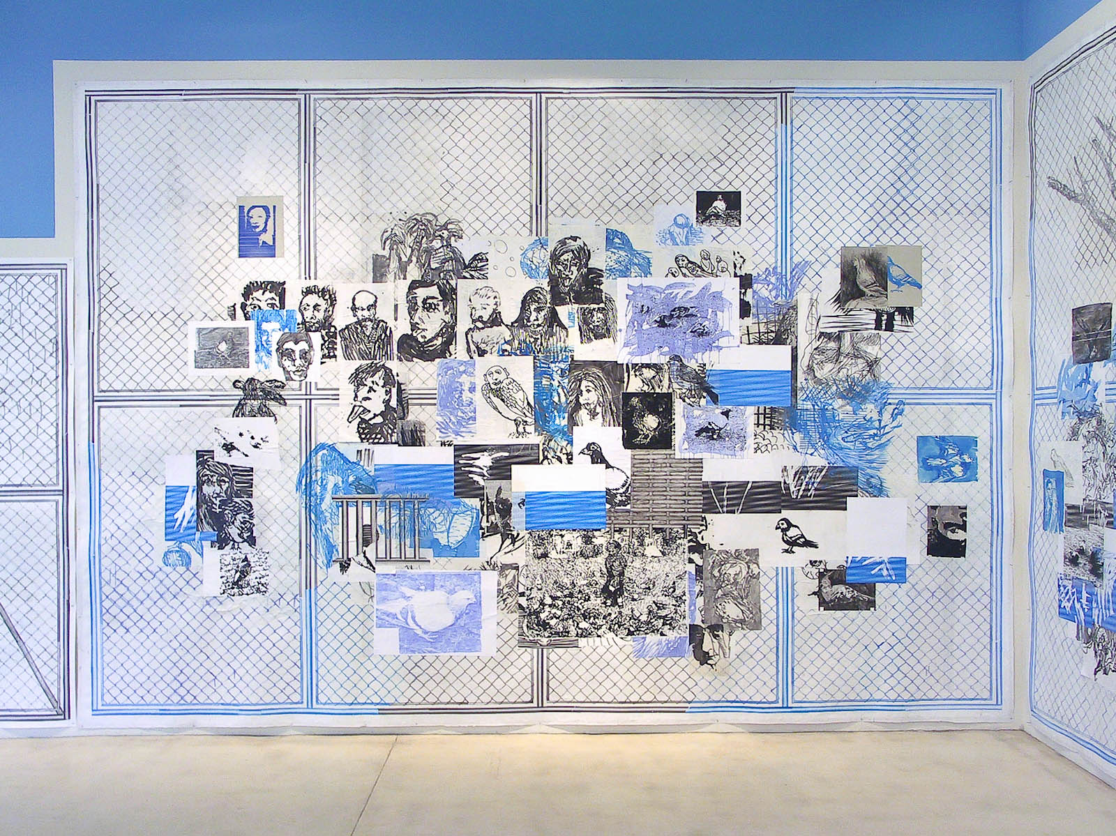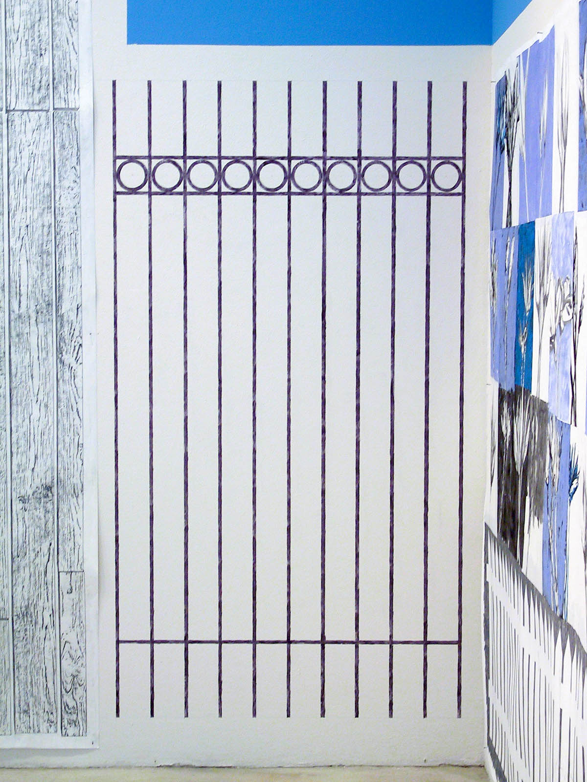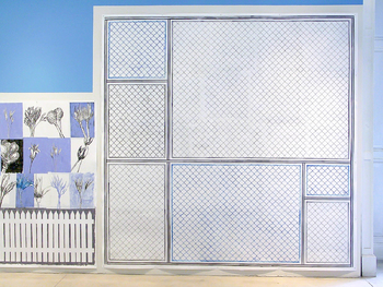 installation with 9 drawings, wall painting