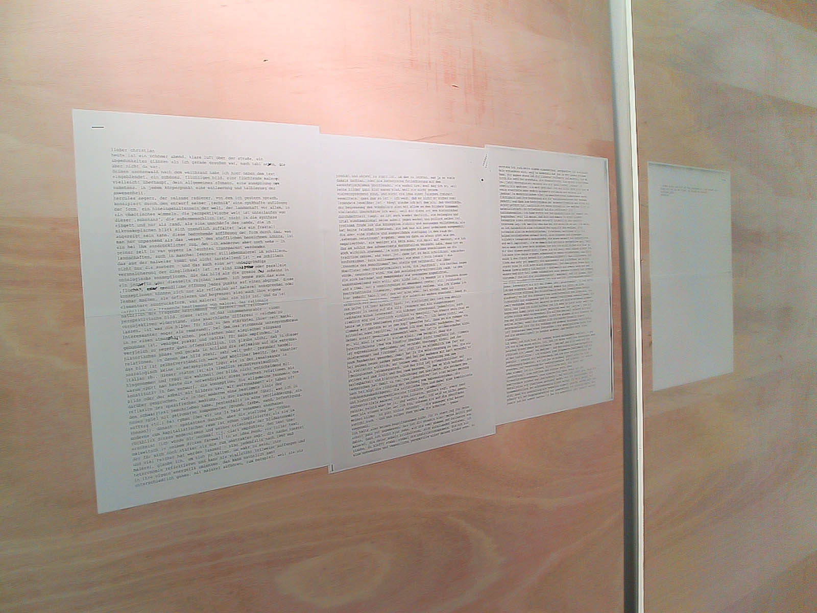 wood panels (240 x 140 cm) with fixed letter from Sebastian Egenhofer